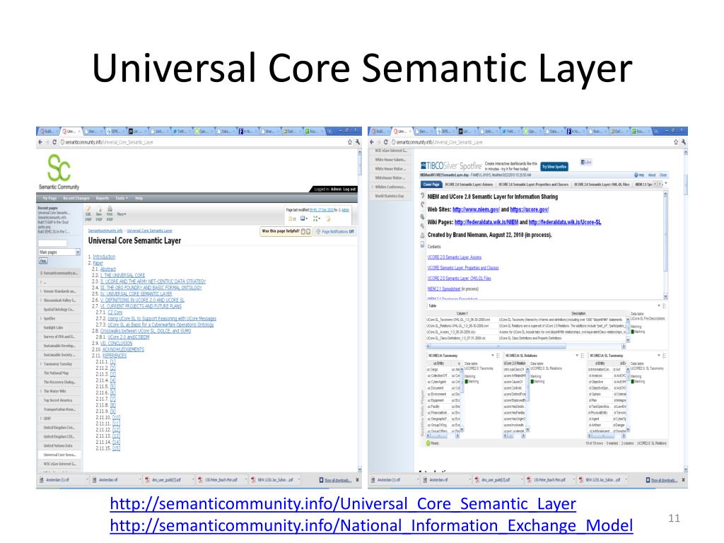 Universal Core Semantic Layer http://semanticommunity.info/Universal_Core_Semantic_Layer http://semanticommunity.info/National_Information_Exchange_Model
