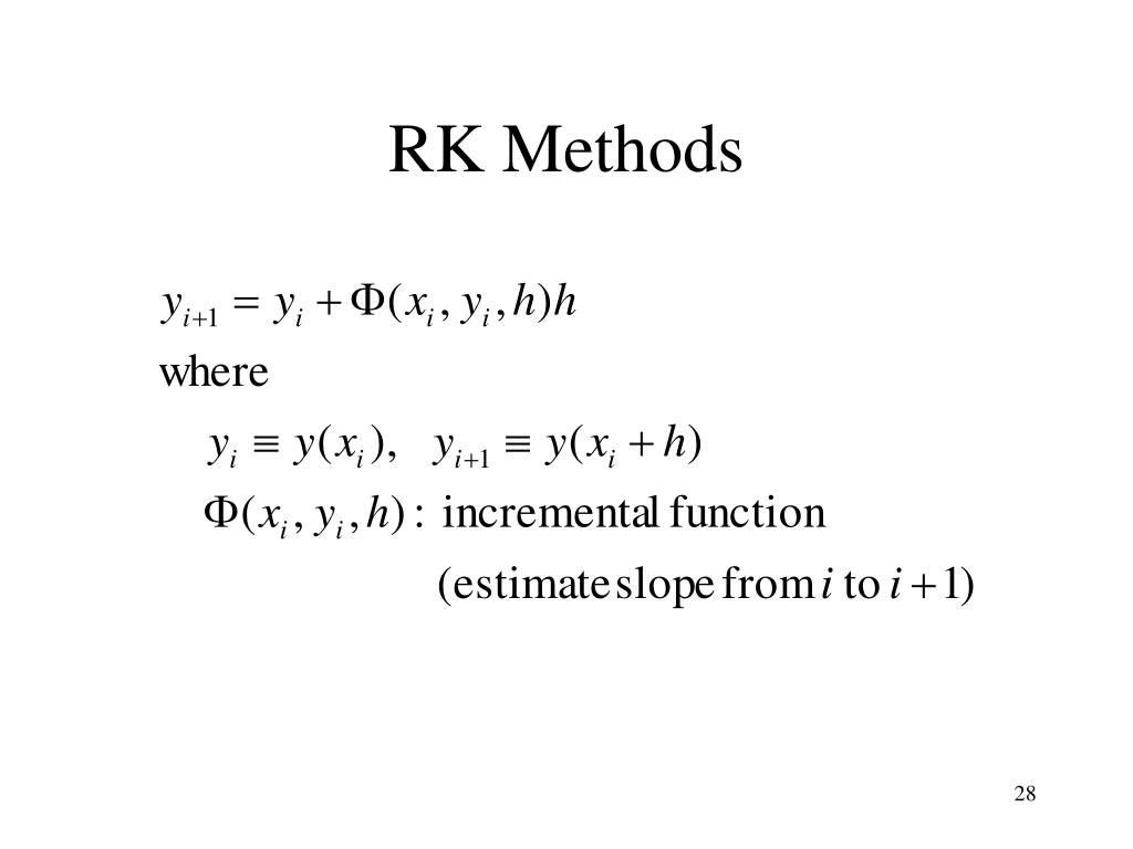 RK 4th Order • Mostly commonly used one • Higher order … more evaluation, but less gain on accuracy