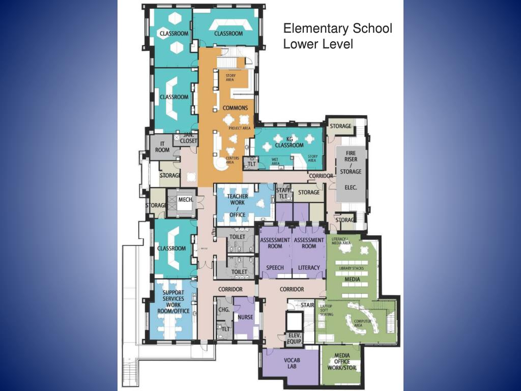 Learning Commons The best ideas in education planning were combined with the schools knowledge of their student population to produce a program that reinforces flexible learning environments. The need for flexible spaces was balanced against the requirement for enhanced acoustical performance by creating a design with small classrooms arranged around a learning commons. This learning commons provided the flexible space for larger group activities and gave the students a much needed social gathering space unique to each school level.