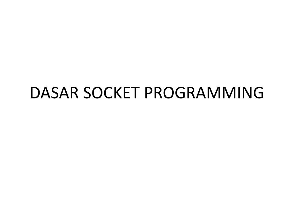 Langkah – langkahdasar di server : • Membuat socket denganperintah socket() • Mengikatkan socket kepadasebuahalamat network denganperintah bind() • Menyiapkan socket untukmenerimakoneksi yang masukdenganperintah listen() • Menerimakoneksi yang masukke server denganperintah accept() • Melakukankomunikasi (mengirimdanmenerima data), denganmenggunakanperintah write() dan read( )