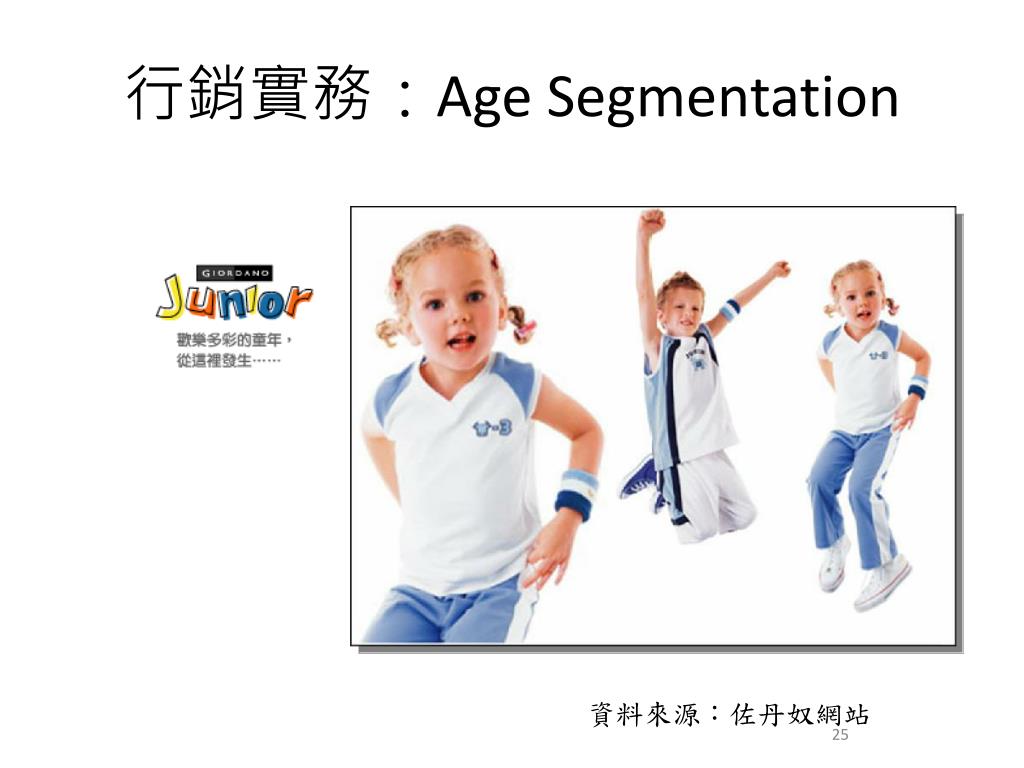 行銷實務:Age Segmentation 資料來源:佐丹奴網站