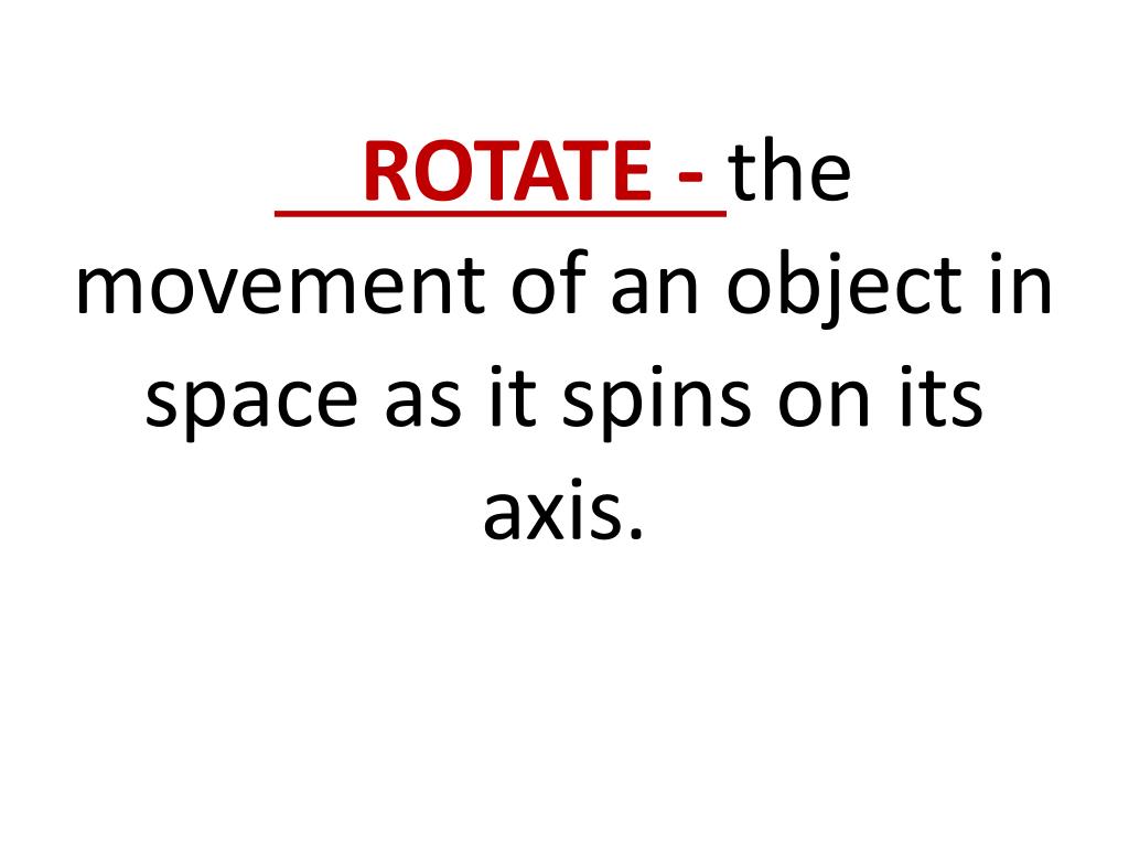 ROTATE - the movement of an object in space as it spins on its axis.