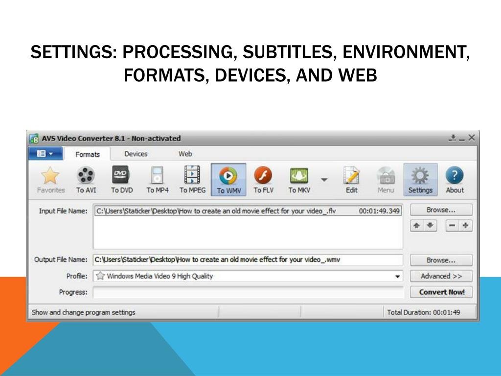 Format tab: AVI, MP4, MPEG, WMV, FLV, MKV, MOV, AND SWF, among others.
