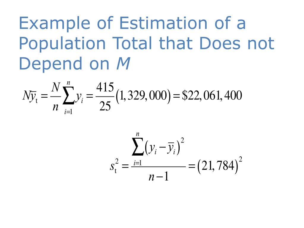 Estimation of a Population Mean *Note: takes the form of a ratio estimator, with taking the place of *Note: can be estimated by if M is unknown