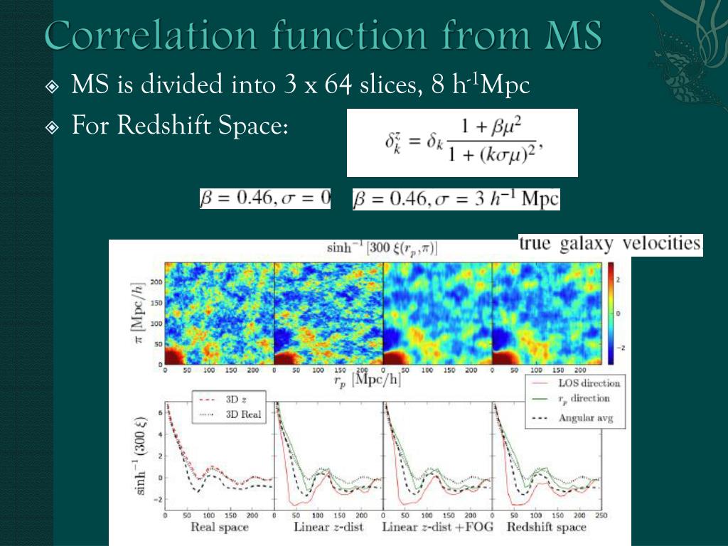 Correlation function from MS • MS is divided into 3 x 64 slices, 8 h-1Mpc • For Redshift Space: