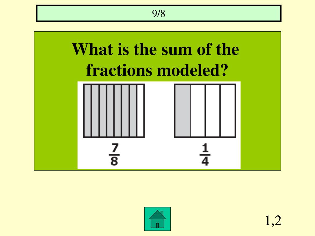 2,4 8/12 What is the difference between the fractions represented by these models?
