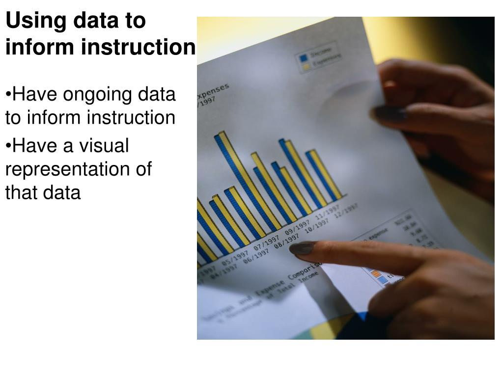 Using data to inform instruction Have ongoing data to inform instruction Have a visual representation of that data