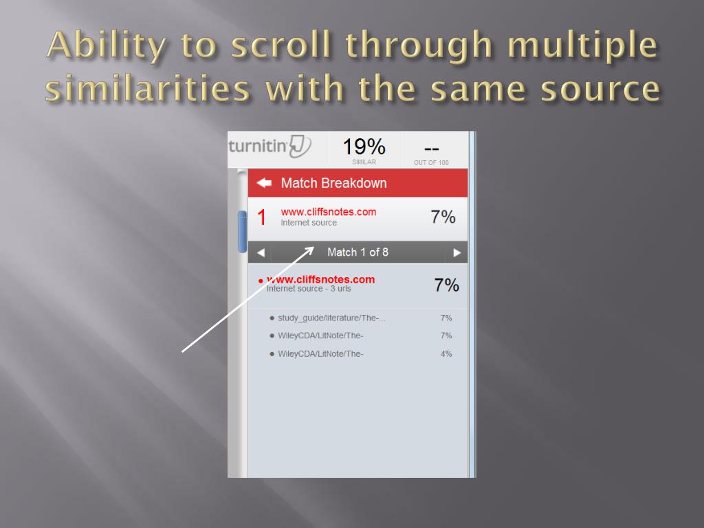 What does Turnitin actually do? Turnitin compares the uploaded paper to millions of pages of web content and highlights the similarities.
