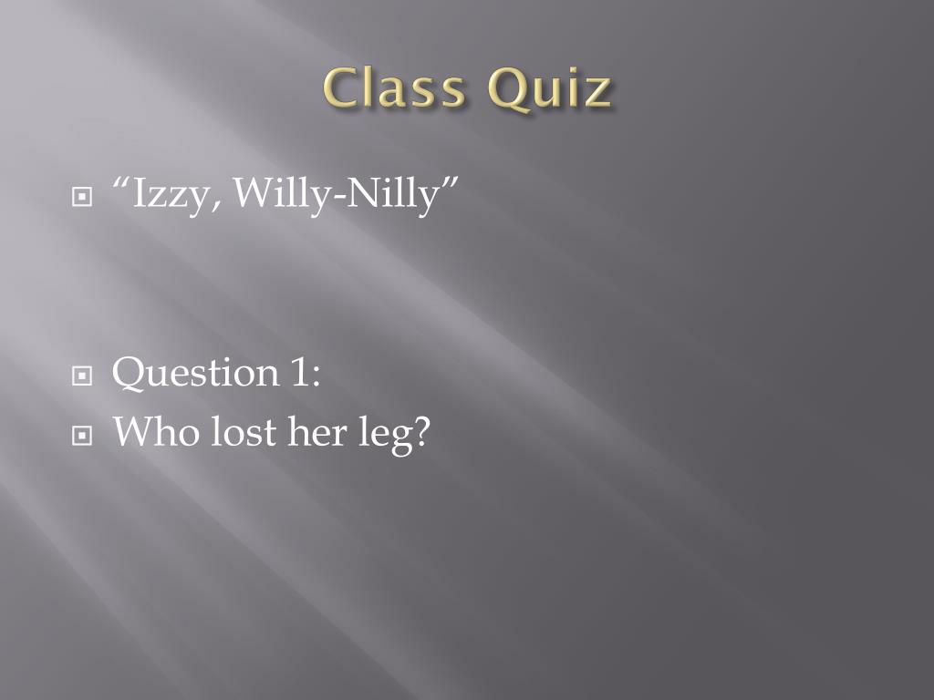Class Quiz • “Izzy, Willy-Nilly” • Question 1: • Who lost her leg?