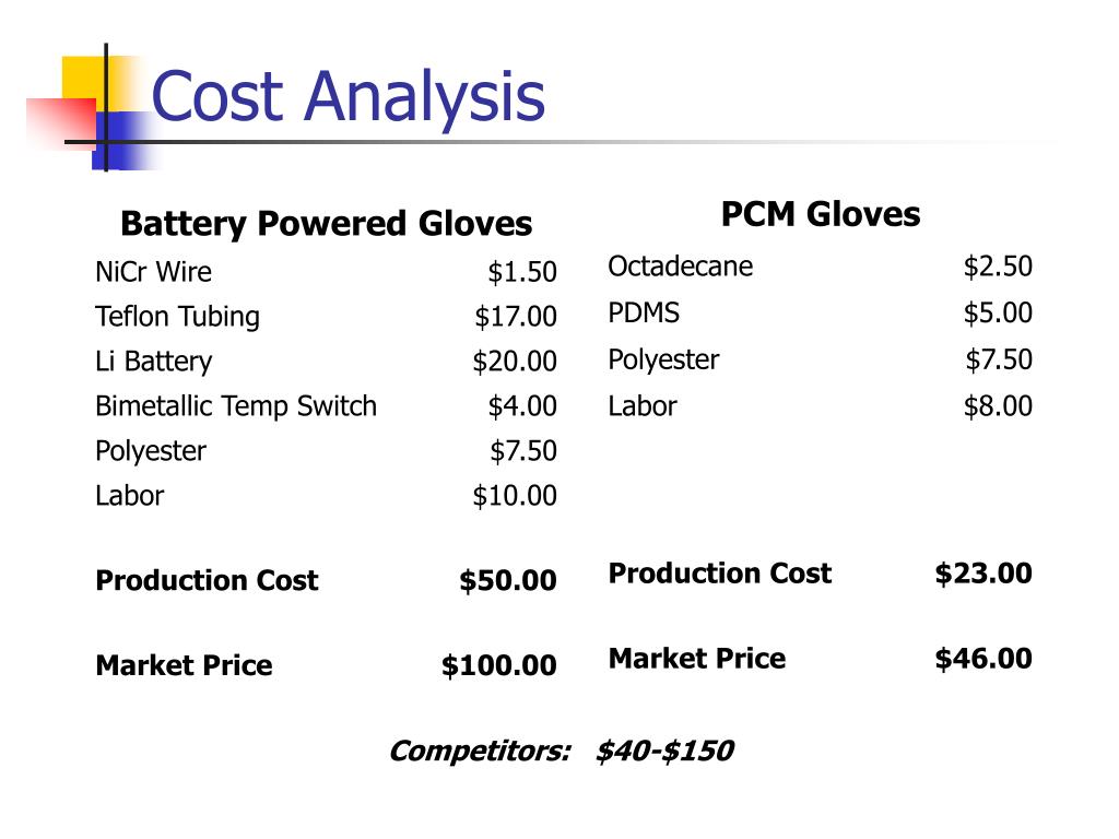 Future Work Improvements • Encapsulation process • Incorporation of PCM into glove • Incorporation of thermally conductive material into PCM gloves • Incorporation of wire into glove • Insulation • Ease of access to recharge battery • On/Off switch • Application of Wire Insulation • Field Test Prototype w/ People or Heat Model • In Freezer