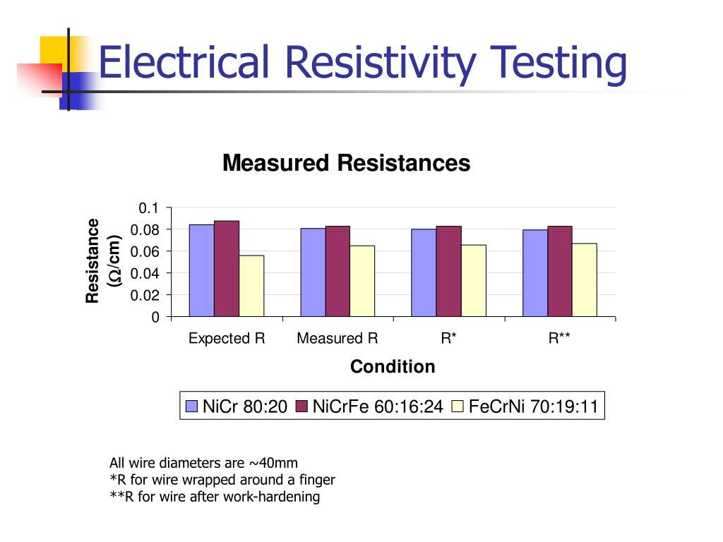 Electrical Resistivity Testing All wire diameters are ~40mm *R for wire wrapped around a finger **R for wire after work-hardening