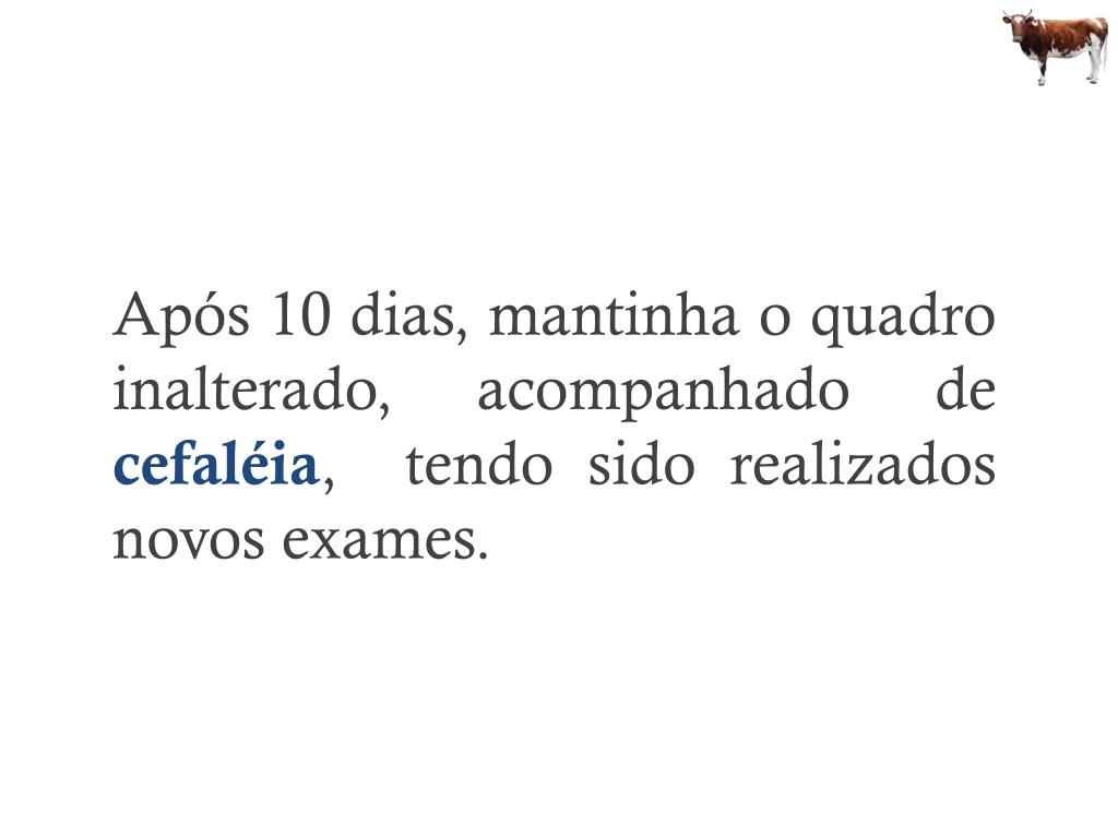 Após 10 dias, mantinha o quadro inalterado, acompanhado de cefaléia, tendo sido realizados novos exames.