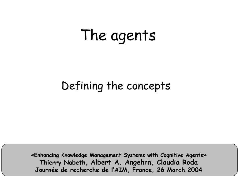 Enhancing Knowledge Management Systems with Cognitive Agents Journée de recherche de l’AIM, France, 26 March 2004 Thierry NABETH, Albert A. Angehrn, Claudia Roda INSEAD CALT – The Centre for Advanced Learning Technologies, Fontainebleau, France