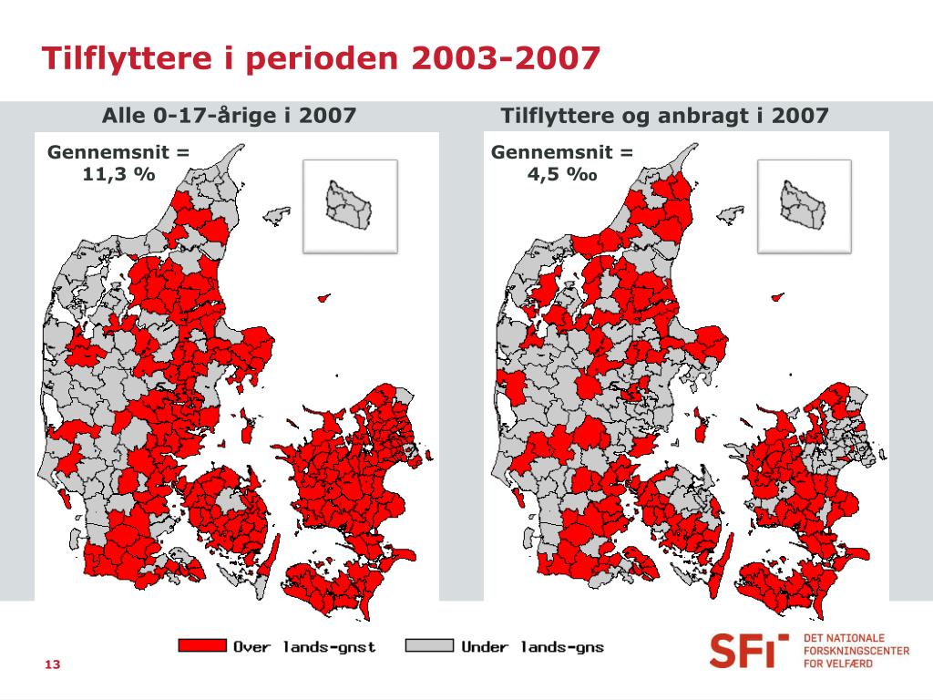Tilflyttere i perioden 2003-2007 Alle 0-17-årige i 2007 Tilflyttere og anbragt i 2007 Gennemsnit = 11,3 % Gennemsnit = 4,5 ‰