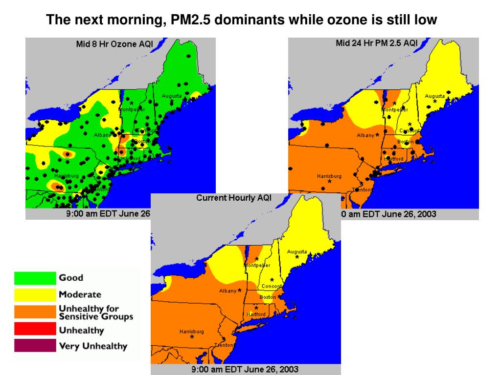 On some days, just looking at the ozone map will be misleading Ozone AQI Map The ozone map indicates good air quality for the NYC metro area at 8 a.m. However, hourly PM2.5 conc. were above 100 ug/m3 during this time.
