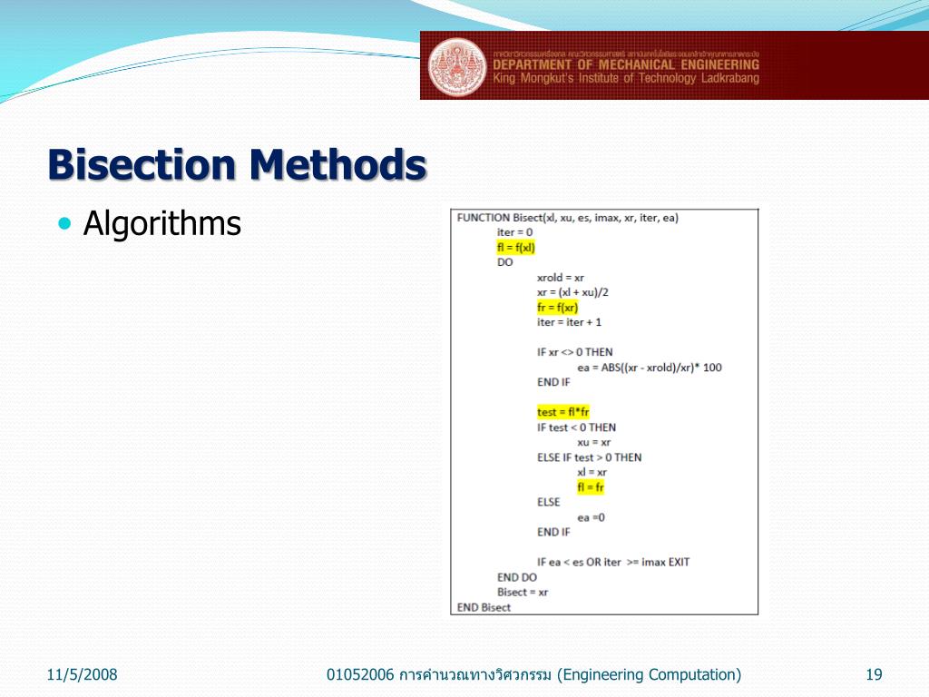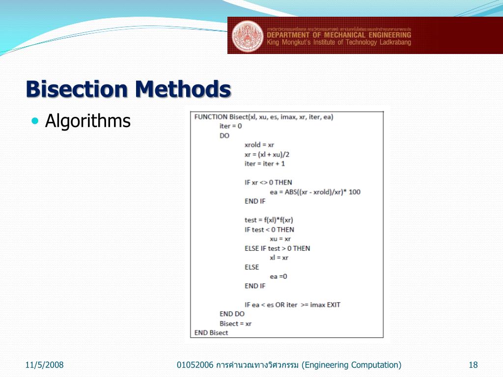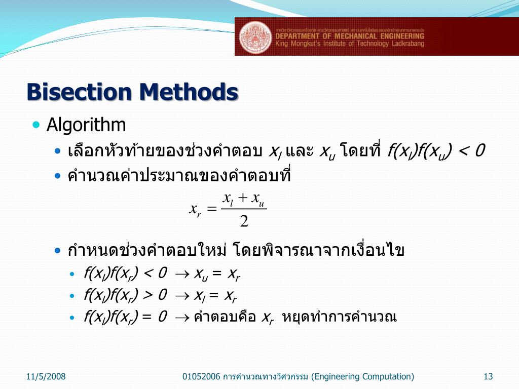 Bisection Methods Algorithms 01052006 การคำนวณทางวิศวกรรม (Engineering Computation)