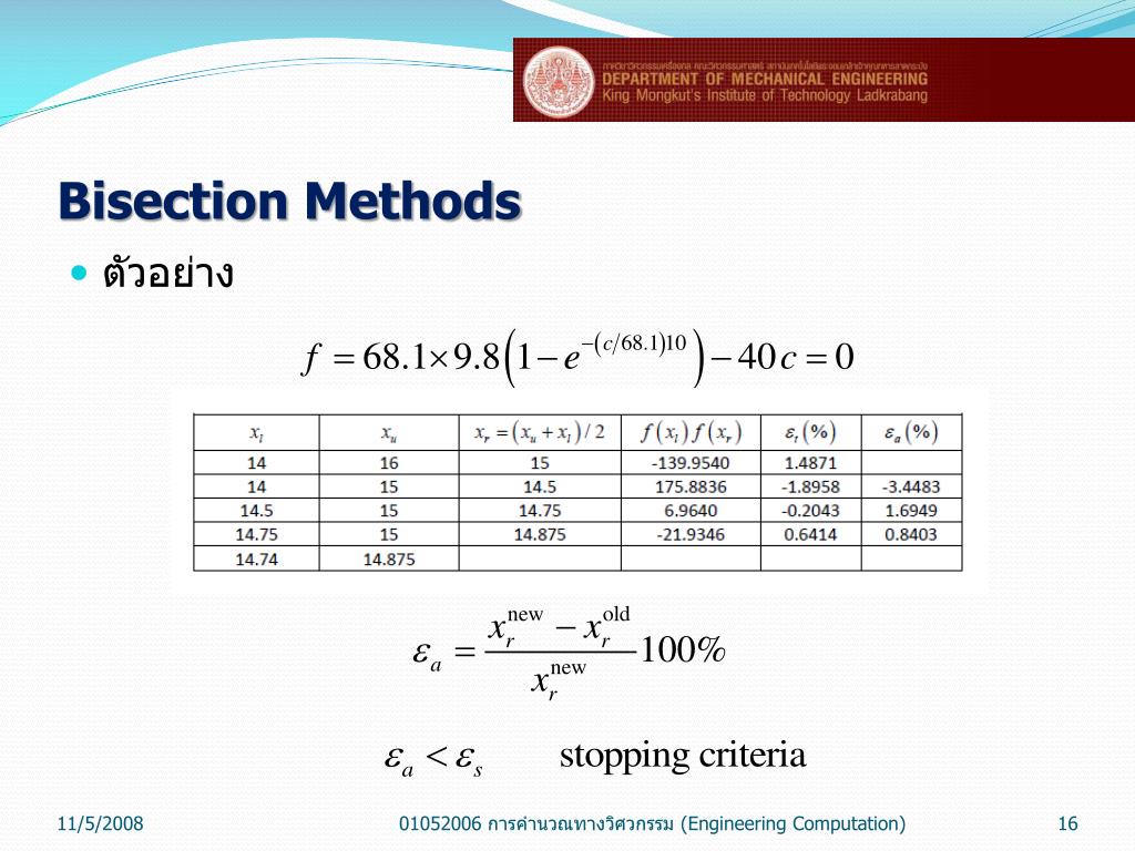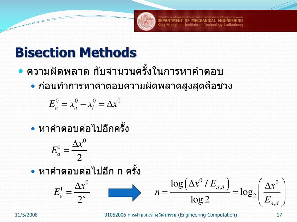 Bisection Methods ตัวอย่าง 01052006 การคำนวณทางวิศวกรรม (Engineering Computation)