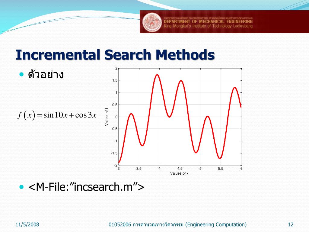 Incremental Search Methods ตัวอย่าง <M-File:”incsearch.m”> 01052006 การคำนวณทางวิศวกรรม (Engineering Computation)