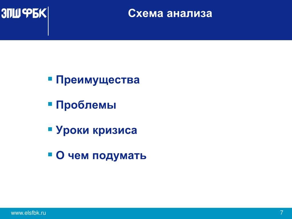 Схема анализа • Преимущества • Проблемы • Уроки кризиса • О чем подумать
