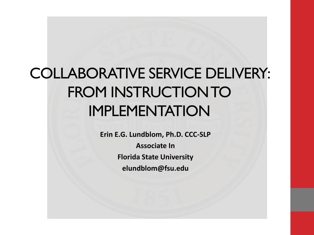 Collaborative service delivery: from instruction to implementation Erin E.G. Lundblom, Ph.D. CCC-SLP Associate In Florida State University elundblom@fsu.edu