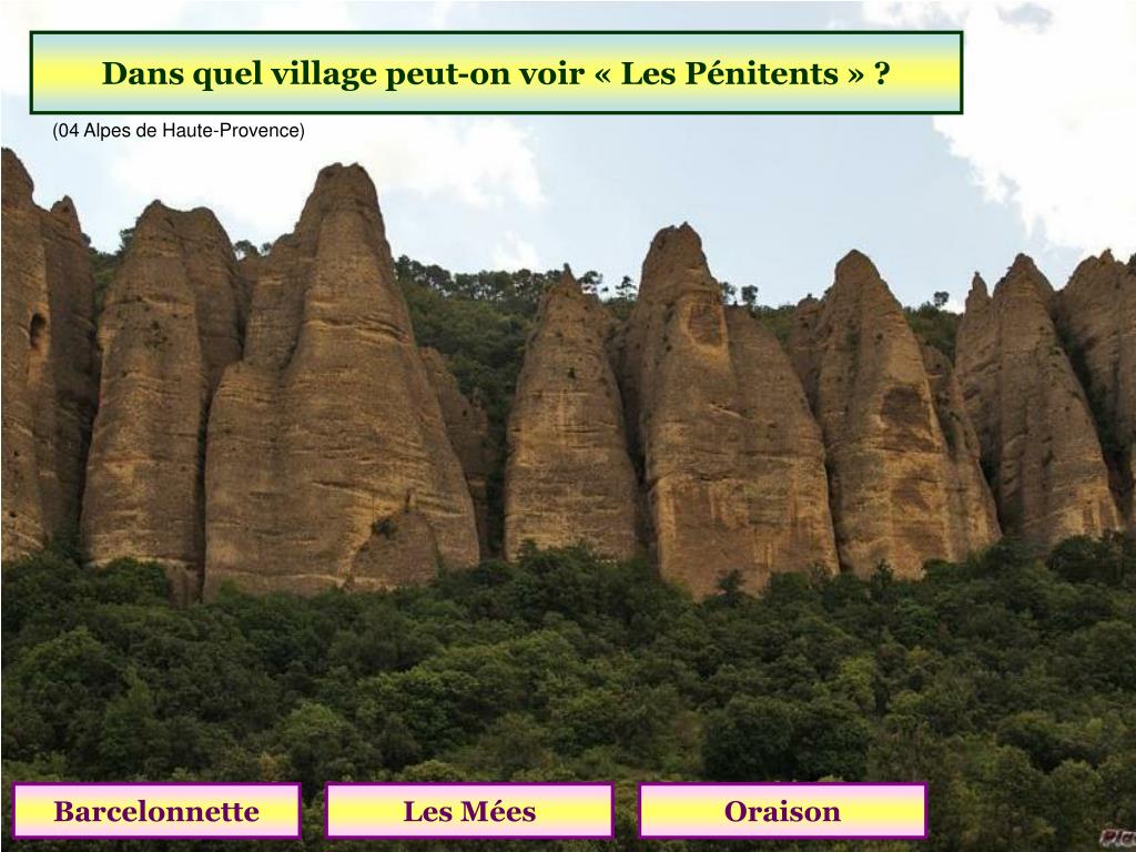 Dans quel village peut-on voir « Les Pénitents » ? (04 Alpes de Haute-Provence) Barcelonnette Les Mées Oraison