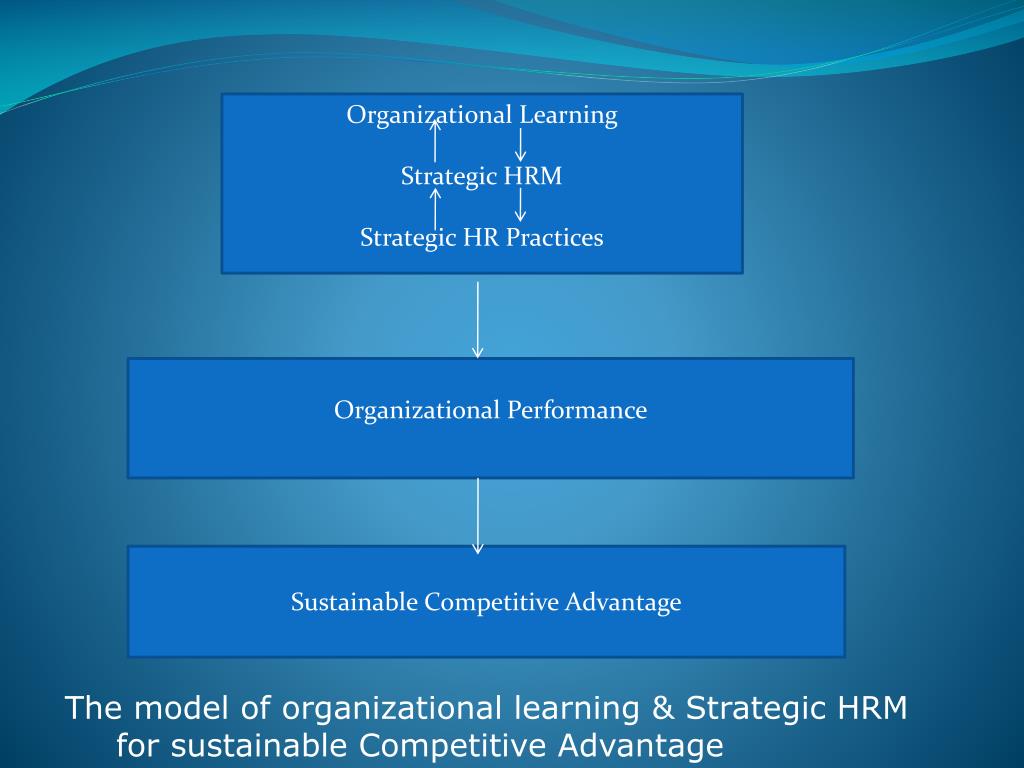 Organizational Learning Strategic HRM Strategic HR Practices The model of organizational learning & Strategic HRM for sustainable Competitive Advantage Organizational Performance Sustainable Competitive Advantage