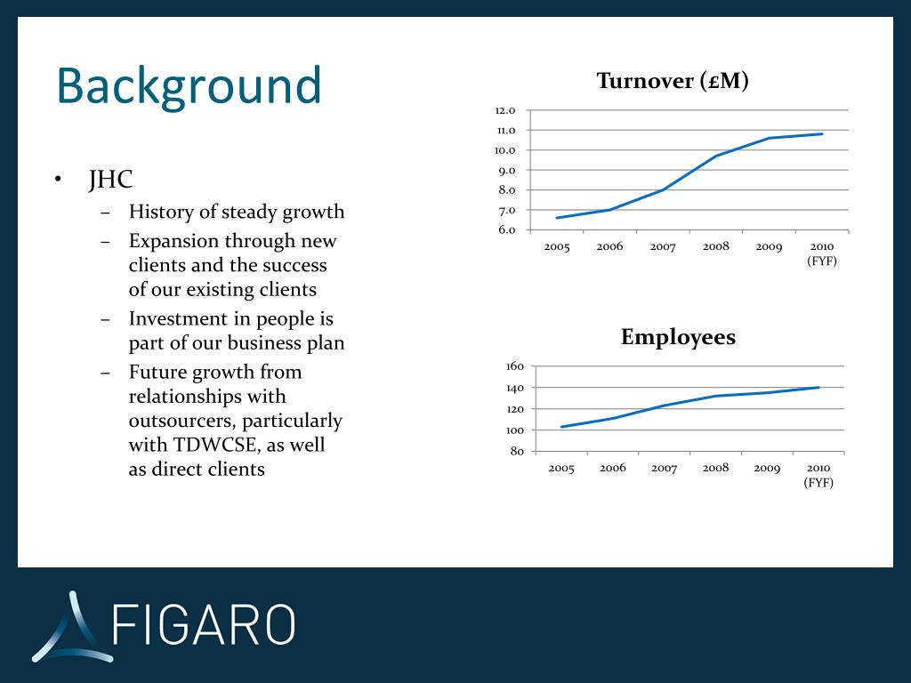 Background • JHC • History of steady growth • Expansion through new clients and the success of our existing clients • Investment in people is part of our business plan • Future growth from relationships with outsourcers, particularly with TDWCSE, as well as direct clients