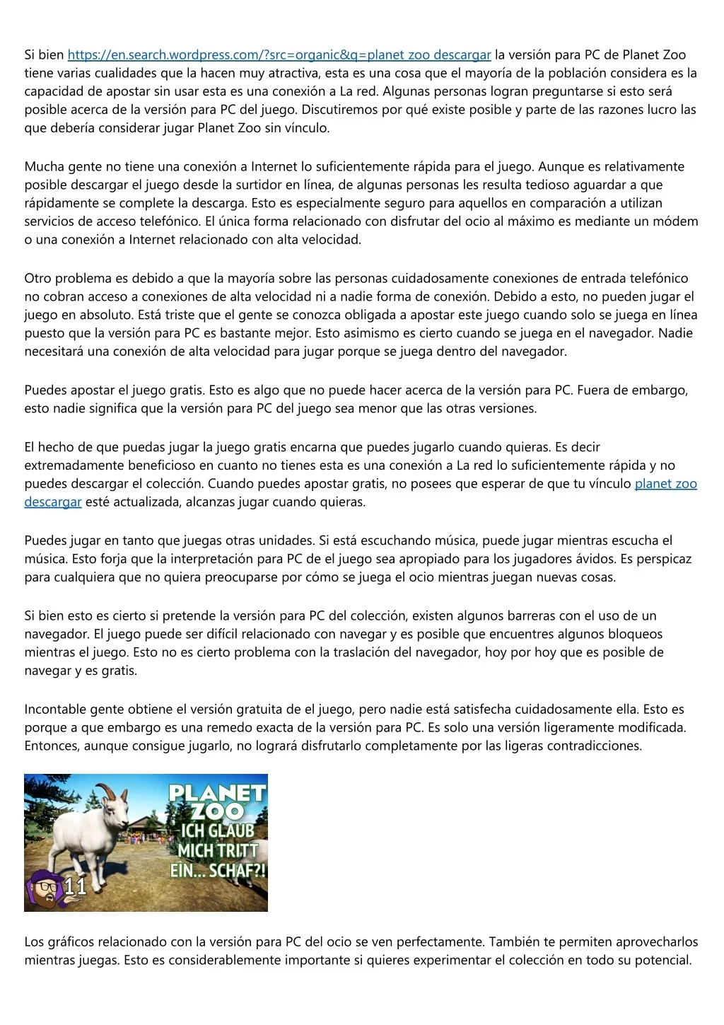 Si bien https://en.search.wordpress.com/?src=organic&q=planet zoo descargar la versión para PC de Planet Zoo tiene varias cualidades que la hacen muy atractiva, esta es una cosa que el mayoría de la población considera es la capacidad de apostar sin usar esta es una conexión a La red. Algunas personas logran preguntarse si esto será posible acerca de la versión para PC del juego. Discutiremos por qué existe posible y parte de las razones lucro las que debería considerar jugar Planet Zoo sin vínculo. Mucha gente no tiene una conexión a Internet lo suficientemente rápida para el juego. Aunque es relativamente posible descargar el juego desde la surtidor en línea, de algunas personas les resulta tedioso aguardar a que rápidamente se complete la descarga. Esto es especialmente seguro para aquellos en comparación a utilizan servicios de acceso telefónico. El única forma relacionado con disfrutar del ocio al máximo es mediante un módem o una conexión a Internet relacionado con alta velocidad. Otro problema es debido a que la mayoría sobre las personas cuidadosamente conexiones de entrada telefónico no cobran acceso a conexiones de alta velocidad ni a nadie forma de conexión. Debido a esto, no pueden jugar el juego en absoluto. Está triste que el gente se conozca obligada a apostar este juego cuando solo se juega en línea puesto que la versión para PC es bastante mejor. Esto asimismo es cierto cuando se juega en el navegador. Nadie necesitará una conexión de alta velocidad para jugar porque se juega dentro del navegador. Puedes apostar el juego gratis. Esto es algo que no puede hacer acerca de la versión para PC. Fuera de embargo, esto nadie significa que la versión para PC del juego sea menor que las otras versiones. El hecho de que puedas jugar la juego gratis encarna que puedes jugarlo cuando quieras. Es decir extremadamente beneficioso en cuanto no tienes esta es una conexión a La red lo suficientemente rápida y no puedes descargar el colección. Cuando puedes apostar gratis, no posees que esperar de que tu vínculo planet zoo descargar esté actualizada, alcanzas jugar cuando quieras. Puedes jugar en tanto que juegas otras unidades. Si está escuchando música, puede jugar mientras escucha el música. Esto forja que la interpretación para PC de el juego sea apropiado para los jugadores ávidos. Es perspicaz para cualquiera que no quiera preocuparse por cómo se juega el ocio mientras juegan nuevas cosas. Si bien esto es cierto si pretende la versión para PC del colección, existen algunos barreras con el uso de un navegador. El juego puede ser difícil relacionado con navegar y es posible que encuentres algunos bloqueos mientras el juego. Esto no es cierto problema con la traslación del navegador, hoy por hoy que es posible de navegar y es gratis. Incontable gente obtiene el versión gratuita de el juego, pero nadie está satisfecha cuidadosamente ella. Esto es porque a que embargo es una remedo exacta de la versión para PC. Es solo una versión ligeramente modificada. Entonces, aunque consigue jugarlo, no logrará disfrutarlo completamente por las ligeras contradicciones. Los gráficos relacionado con la versión para PC del ocio se ven perfectamente. También te permiten aprovecharlos mientras juegas. Esto es considerablemente importante si quieres experimentar el colección en todo su potencial.