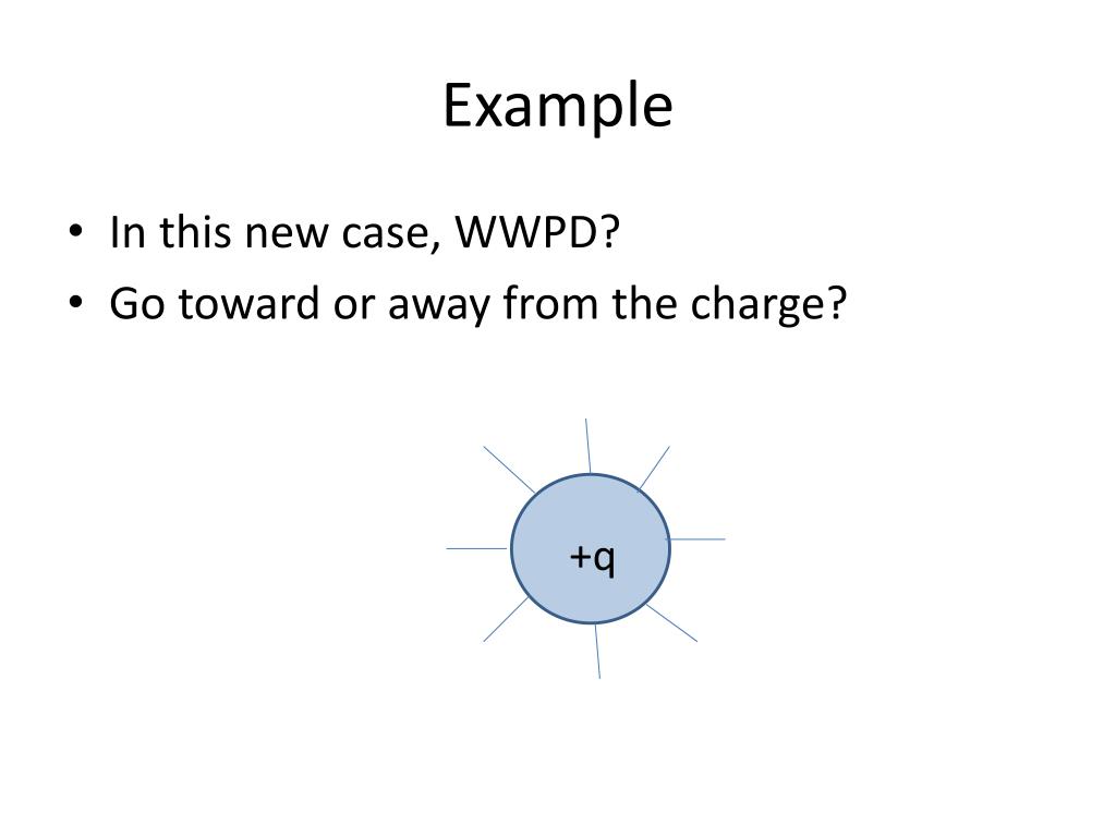 Example • In this new case, WWPD? • Go toward or away from the charge? +q