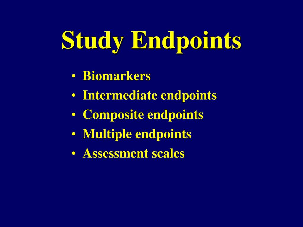 Study Endpoints • Biomarkers • Intermediate endpoints • Composite endpoints • Multiple endpoints • Assessment scales