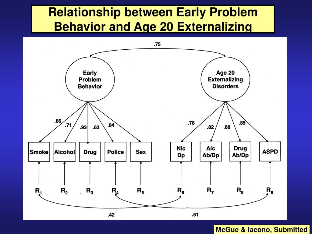 Relationship between Early Problem Behavior and Age 20 Externalizing McGue & Iacono, Submitted