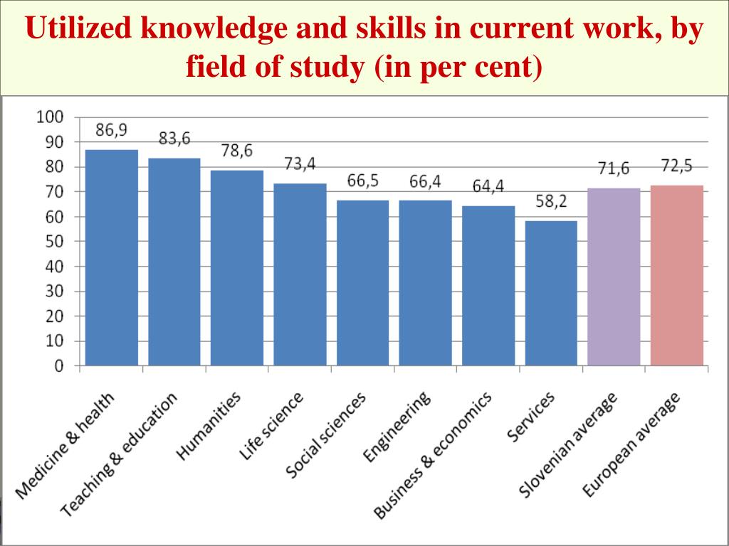 Utilized knowledge and skills in current work, by field of study (in per cent)