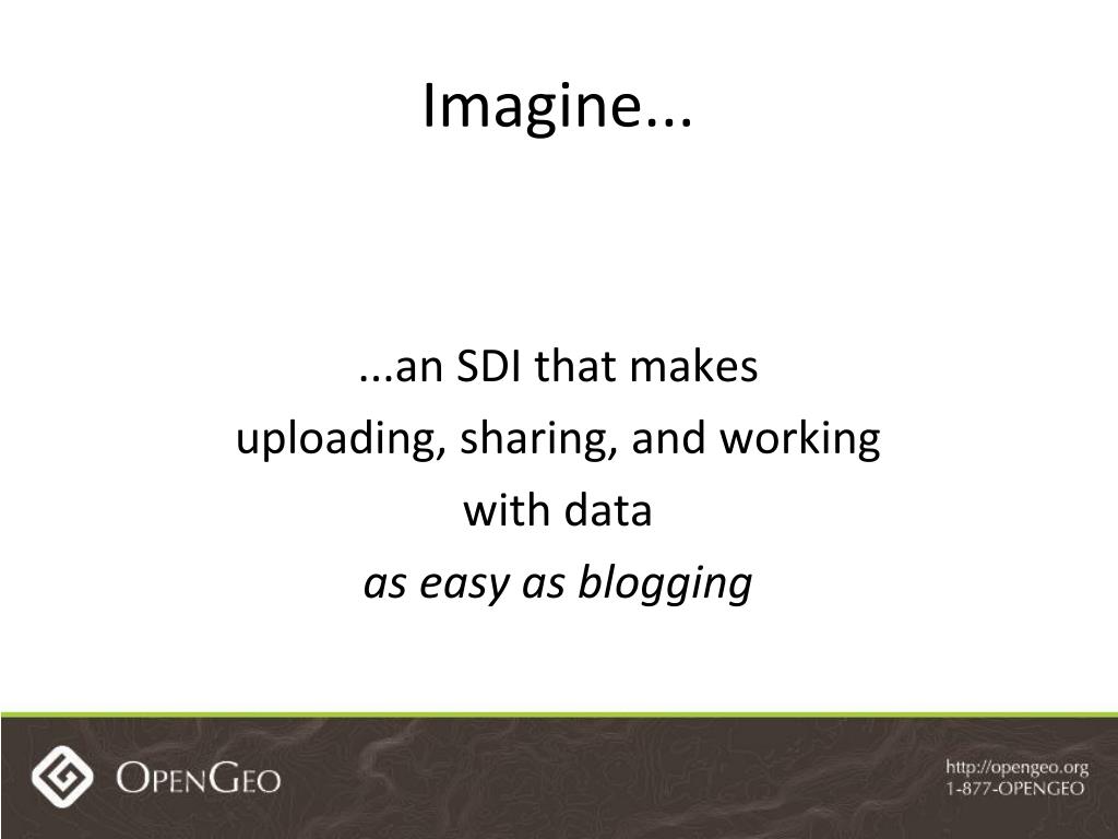 ...an SDI that makes uploading, sharing, and working with data as easy as blogging Imagine...