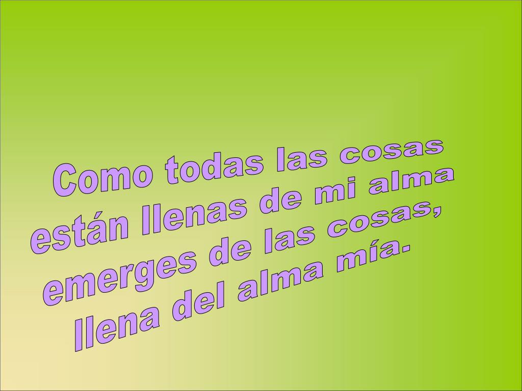 Como todas las cosas están llenas de mi alma emerges de las cosas, llena del alma mía.