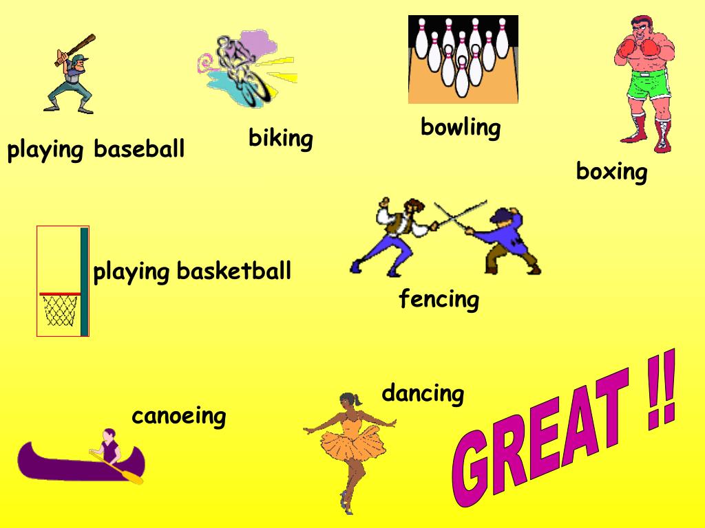 bowling biking playing baseball boxing playingbasketball fencing GREAT !! dancing canoeing