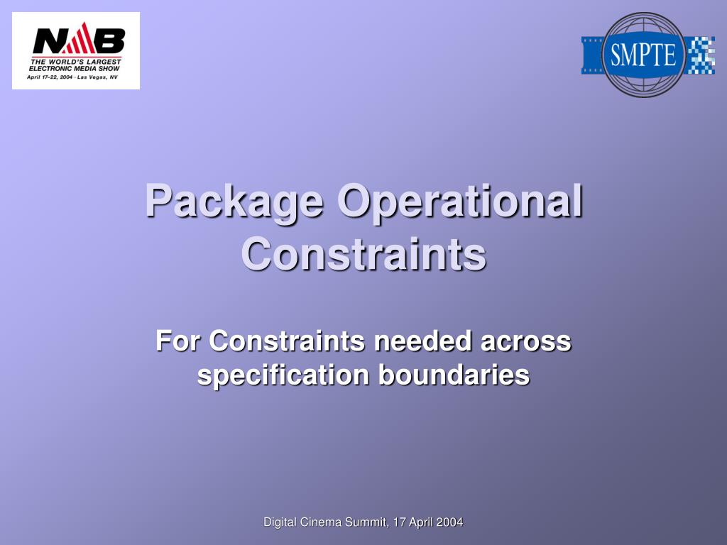 Package OperationalConstraintsFor Constraints needed across specification boundaries Digital Cinema Summit, 17 April 2004