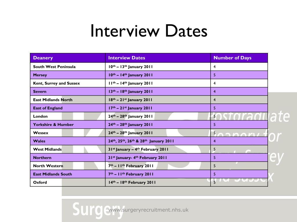 Interview Dates www.surgeryrecruitment.nhs.uk