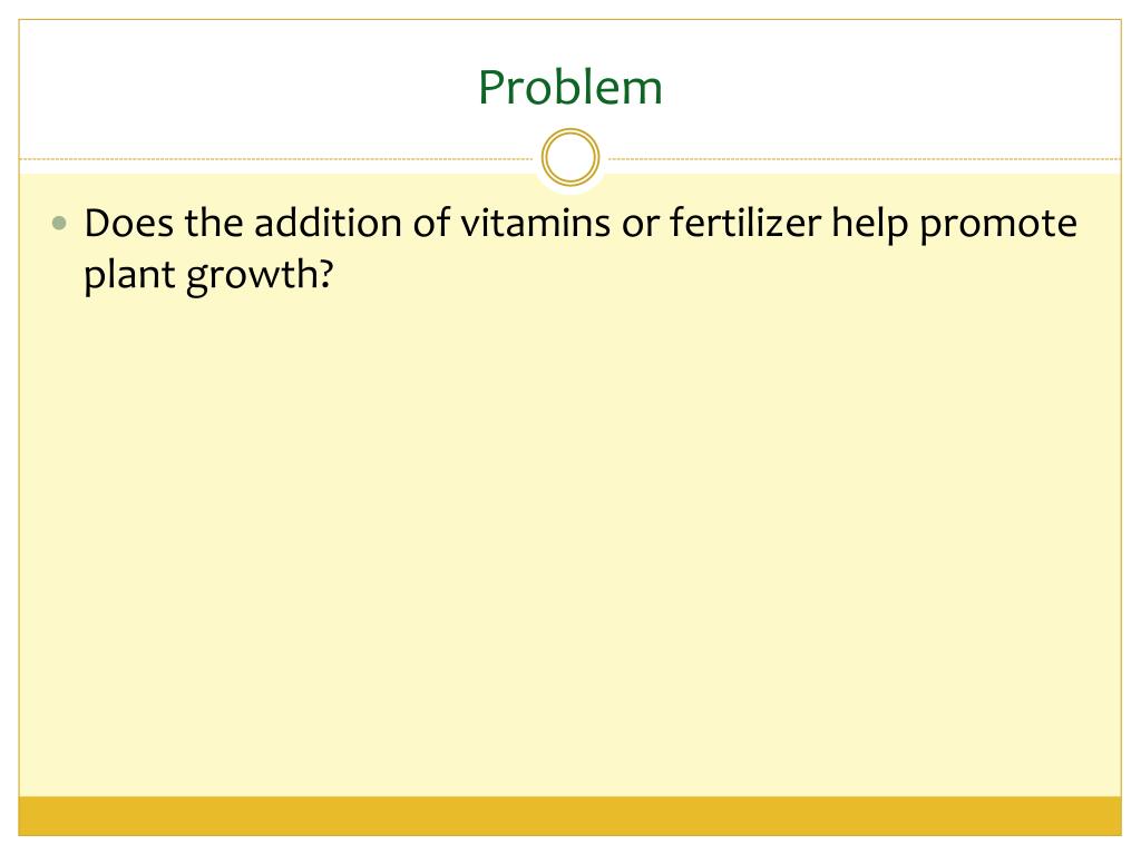 Problem Does the addition of vitamins or fertilizer help promote plant growth?
