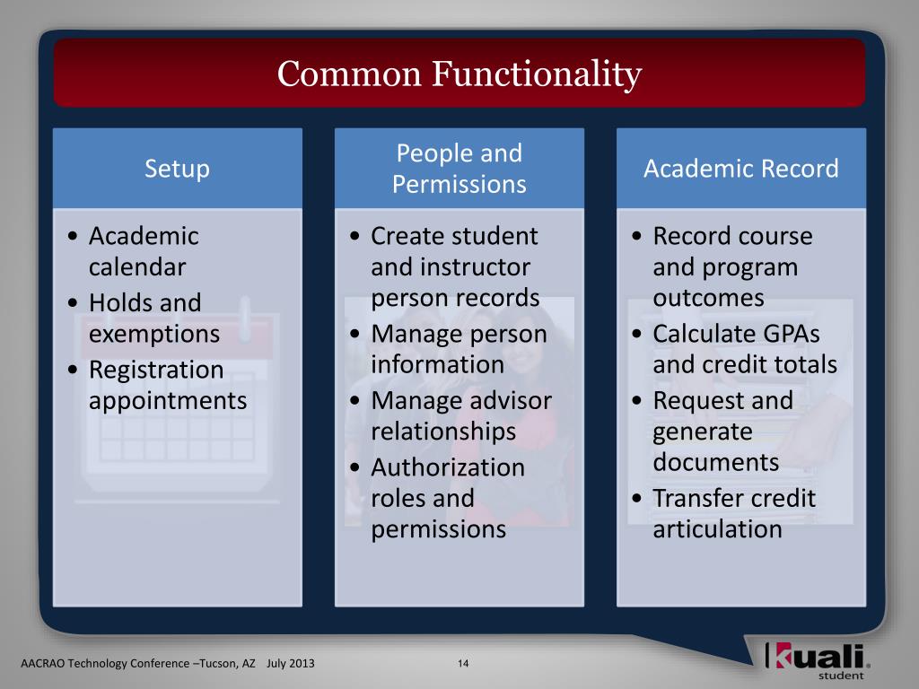 Common Functionality AACRAO Technology Conference –Tucson, AZ July 2013