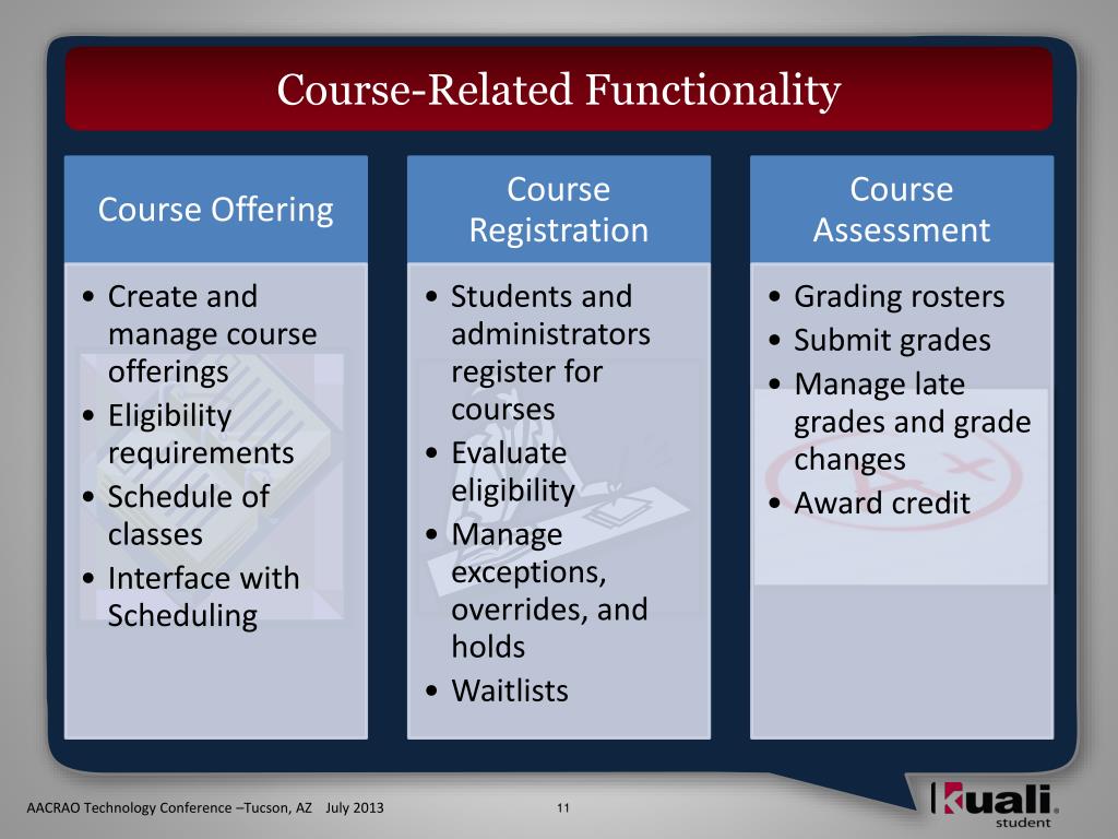 Course-Related Functionality AACRAO Technology Conference –Tucson, AZ July 2013