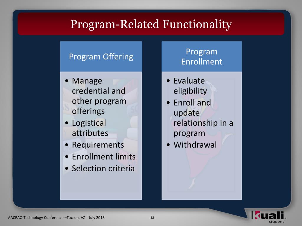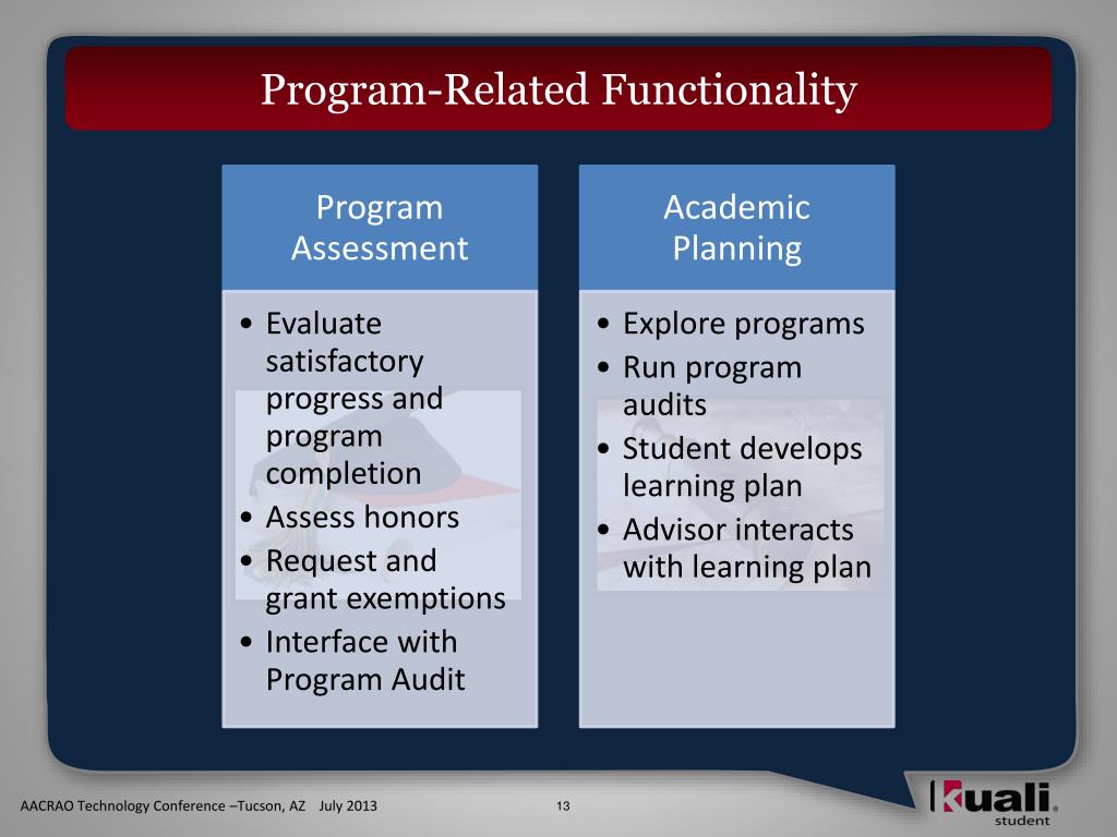Program-Related Functionality AACRAO Technology Conference –Tucson, AZ July 2013