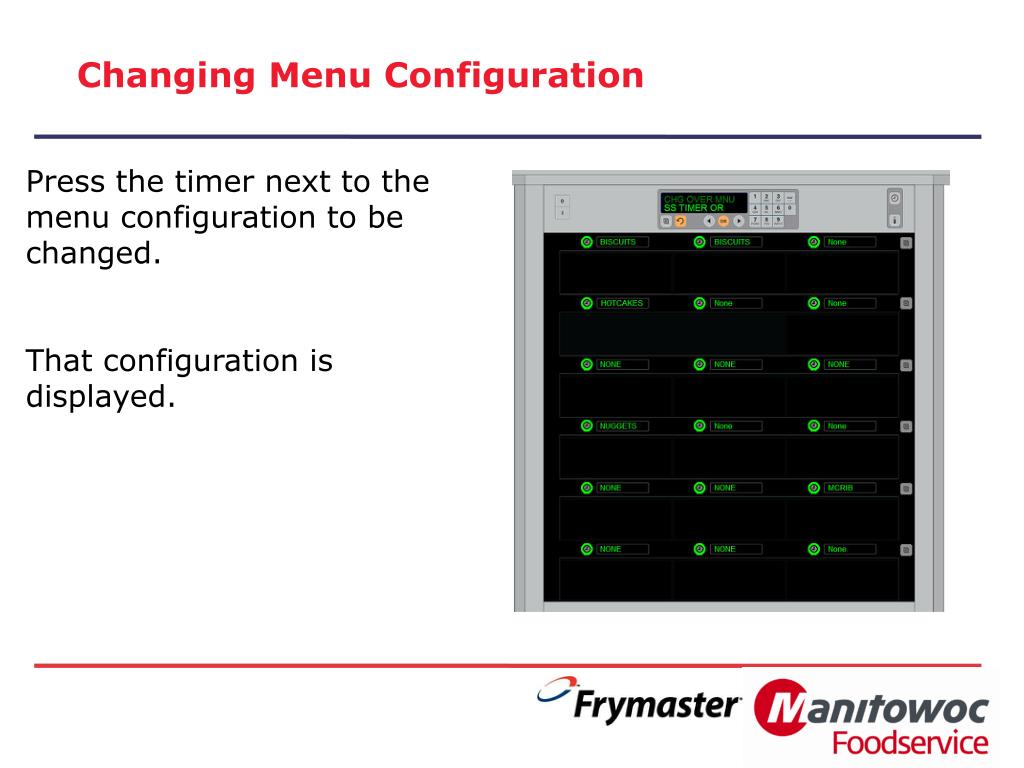 Changing Menu Configuration Press the timer next to the menu configuration to be changed. That configuration is displayed.