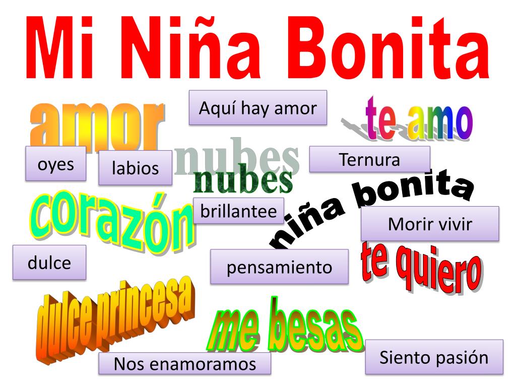 Mi Niña Bonita Aquí hay amor te amo amor oyes Ternura labios nubes corazón brillantee niña bonita Morirvivir te quiero dulce pensamiento dulce princesa me besas Sientopasión Nosenamoramos