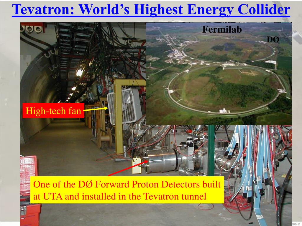 Tevatron: World’s Highest Energy Collider Fermilab DØ High-tech fan One of the DØ Forward Proton Detectors built at UTA and installed in the Tevatron tunnel