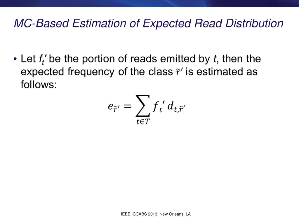 MC-Based Estimation of Expected Read Distribution IEEE ICCABS 2013, New Orleans, LA