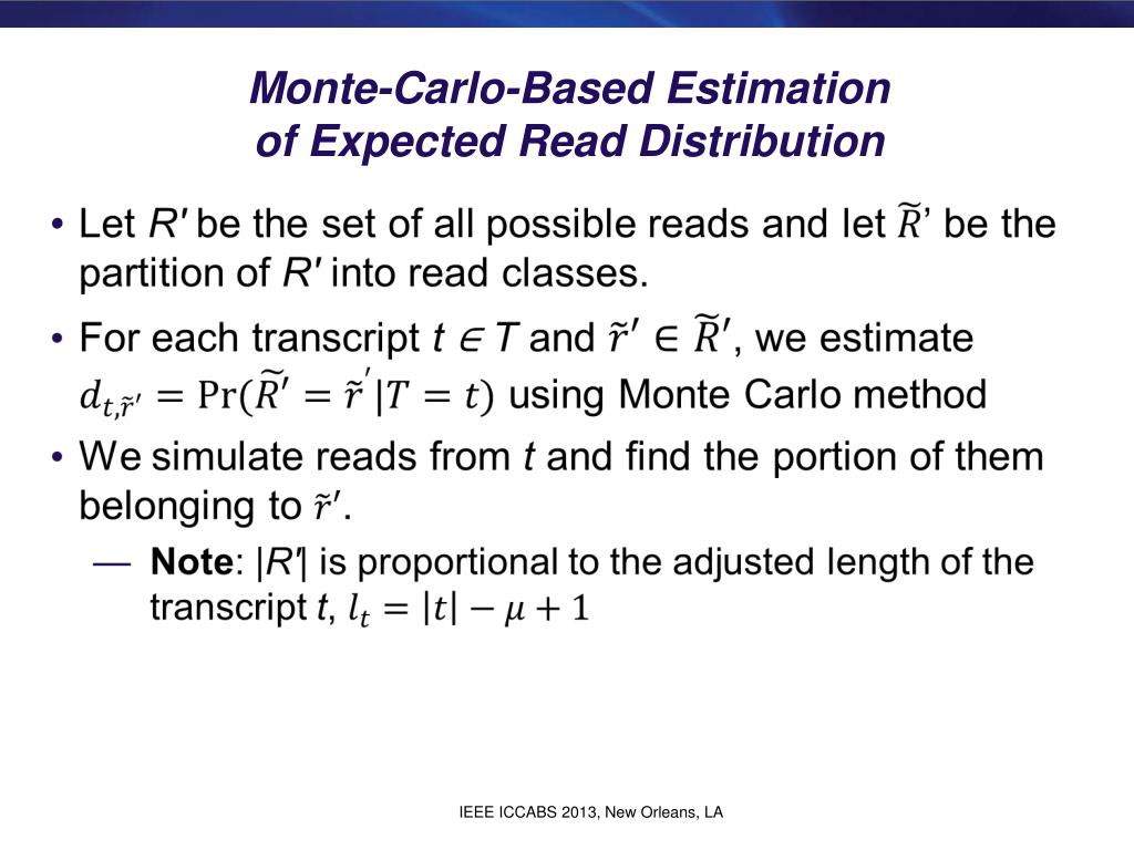 Monte-Carlo-Based Estimation of Expected Read Distribution IEEE ICCABS 2013, New Orleans, LA