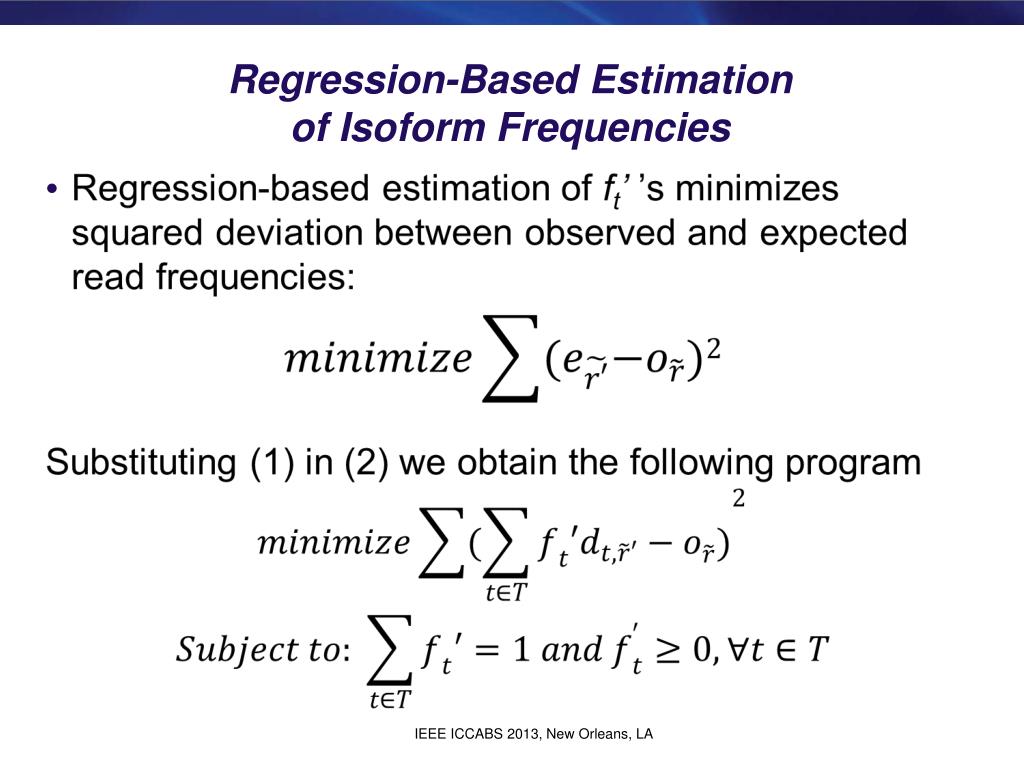 Regression-Based Estimation of Isoform Frequencies IEEE ICCABS 2013, New Orleans, LA