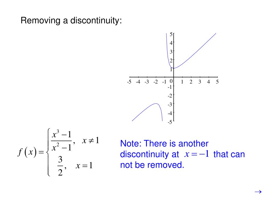 Note: There is another discontinuity at that can not be removed. Removing a discontinuity: