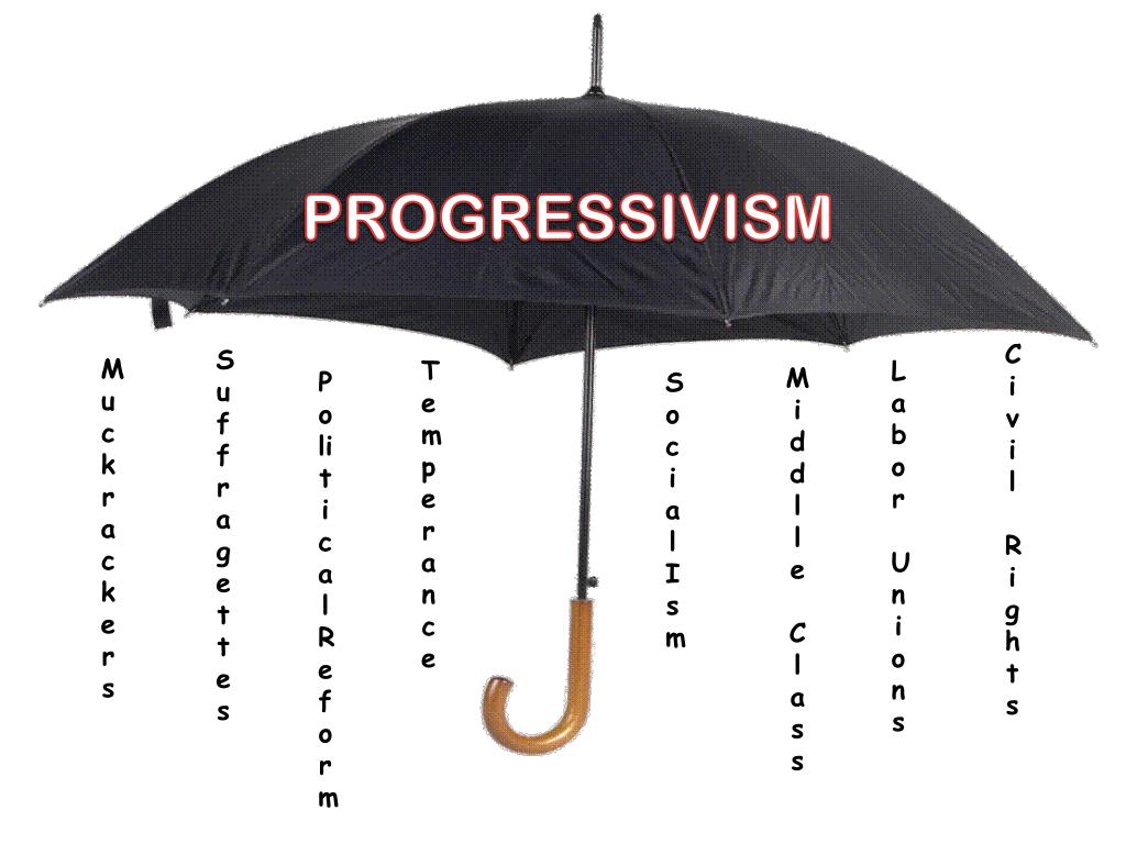 PROGRESSIVISM CivilRights Suffragettes Muckrackers Temperance Labor Unions Midd l l e C l a s s PoliticalReform Social Ism