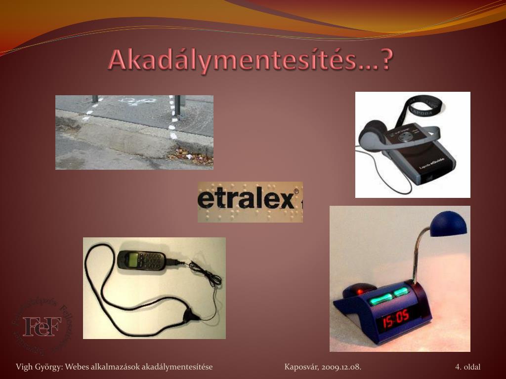 Akadálymentesítés…? Vigh György: Webes alkalmazások akadálymentesítése Kaposvár, 2009.12.08.